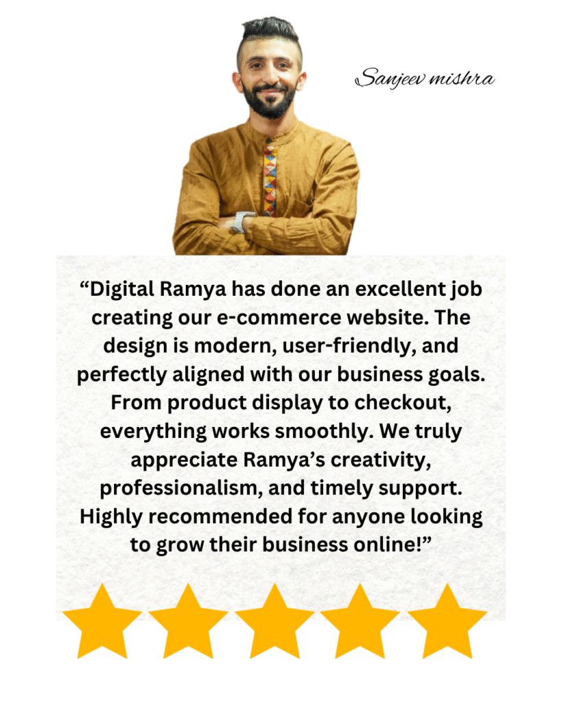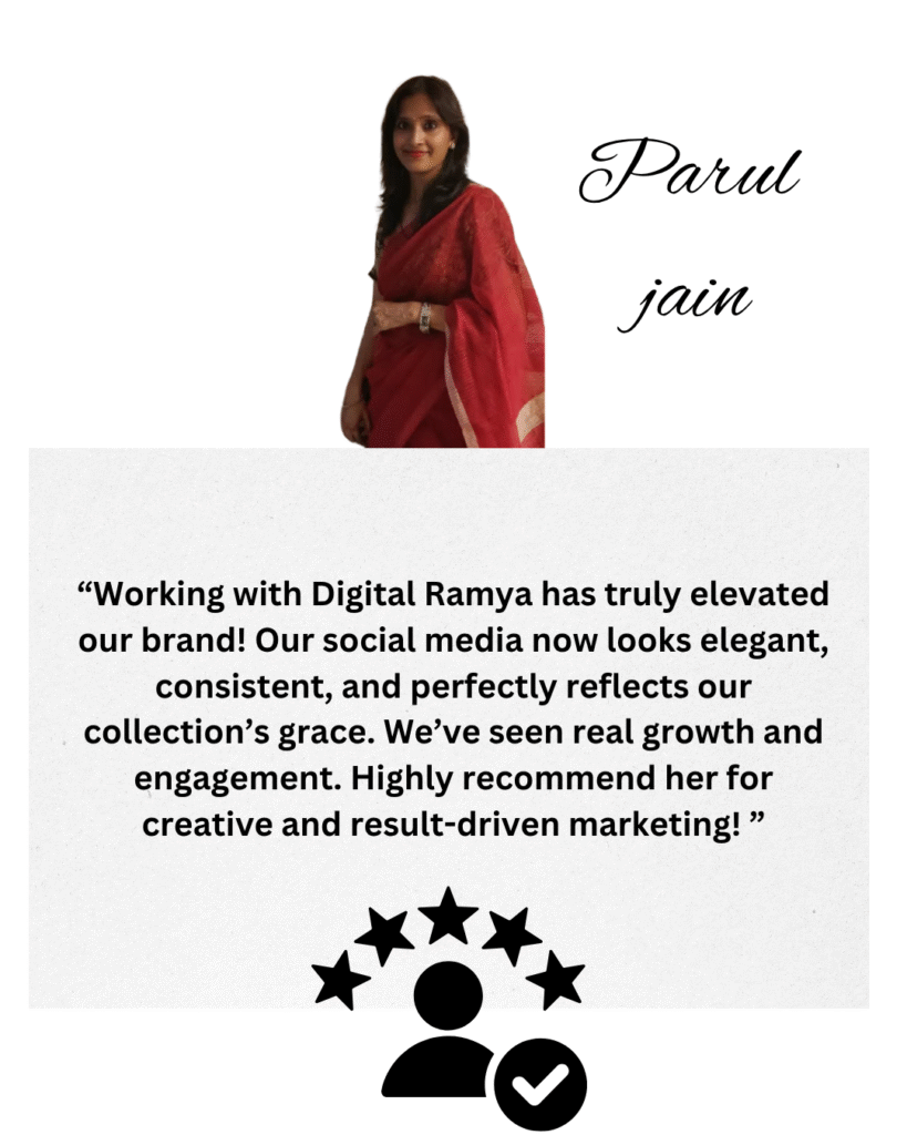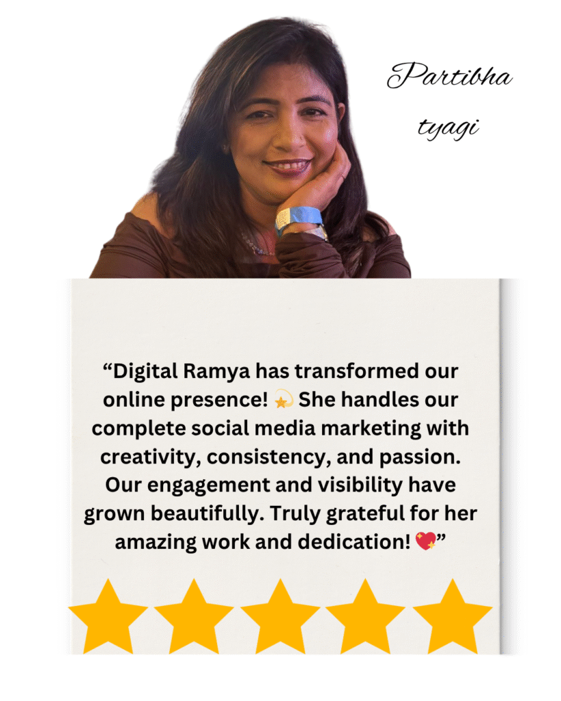 At Digital Ramya, every project begins with a personalized marketing strategy designed around your unique business goals. I believe in creating creative, result-driven campaigns that not only look beautiful but also deliver measurable success. With a strong commitment to on-time delivery and affordable packages, I ensure your investment brings maximum value. Most importantly, you’ll experience direct 1-to-1 support, where your ideas are heard, refined, and brought to life with care. Together, we don’t just build brands — we build trust